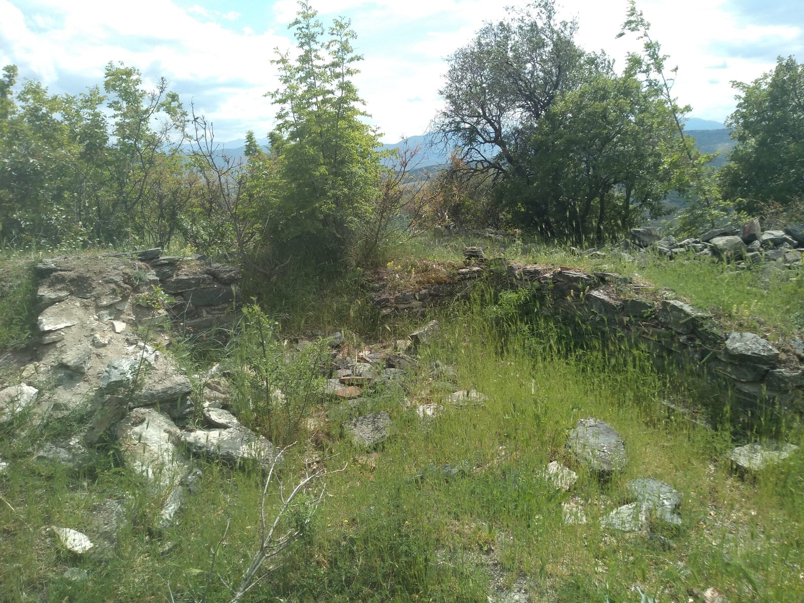 На јужниот крај на ридот што е највисок, во доцноантичко време бил изграден кастел со овална форма, со димензии 185 × 110 м (1 ха). Обѕидието, градено од камен со вар и зајакнато со низа кули, потекува од доцноримско време (IV век), генерално е обновено во VI век (несомнено по земјотресот во 518 г.). Обновена била и внатрешноста, што и денес одлично се гледа на површината: низа станбени градби со неколку одделенија, вклопени во низи долж тесни паралелни улички. На највисоката позиција стоела црква, опркужена со неколку помошни градби.